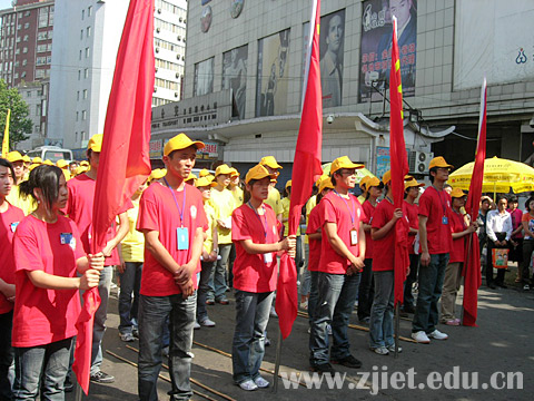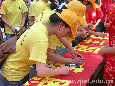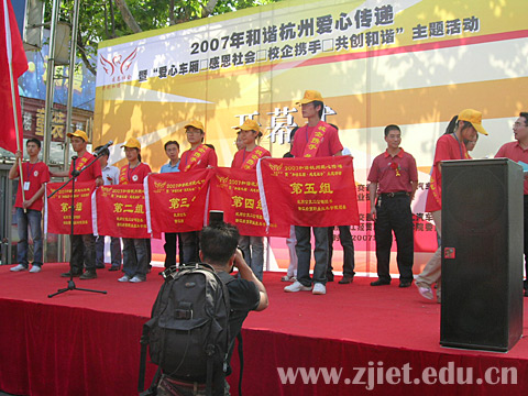在开幕式上,学院党委副书记潘素芳、杭州公交集团有限公司第二汽车公司党委书记陶敏强分别代表活动的两家主办单位做了热情洋溢的讲话。学生代表张福广宣读了活动倡议书,参加活动的领导郑重地为六个小分队代表授予了活动旗帜、绶带和活动标志。