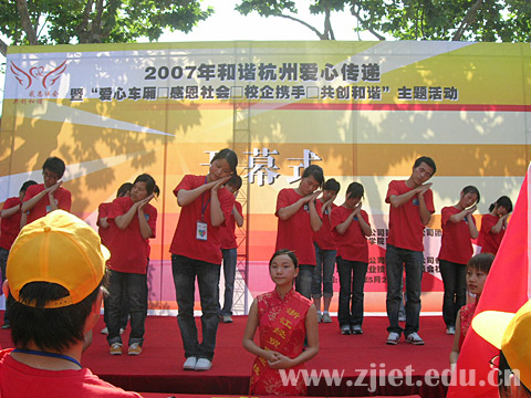 5月22日下午,我院与杭州市公共交通总公司第二汽车公司团委联合在杭州龙翔公交中心站隆重举行了“爱心车厢 感恩社会 校企携手 共创和谐”主题活动开幕式。