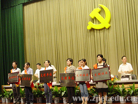 6月29日上午,杭州经济技术开发区纪念建党86周年暨“双争双评”、文明创建表彰大会在杭电举行。我院荣获2006年度杭州市级文明单位,会上开发区领导向我院授牌。潘春胜同志被评为2006年度精神文明创建工作先进个人。