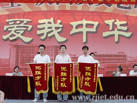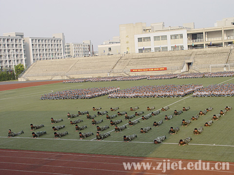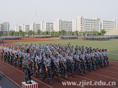 下午3点50分,学院2007级全体学生在田径场整齐列队,伴随着高亢的国歌声,汇报大会正式开始。学院党委书记童学敏在武警杭州指挥学院训练部副部长叶少华中校的陪同下检阅了全体受训学员。接着,阅兵总指挥宣布分列式开始。2007级学生分12个方阵依次通过主席台。同学们高昂的精神面貌,整齐而矫健的步伐,嘹亮的口号,获得了在场领导和老师们的阵阵掌声。随后,表演方阵的同学向领导和老师们展示了两周来的军训成果,由40名教官组成的表演方阵进行了精彩的擒敌表演,他们的表演赢得了满场的喝彩。