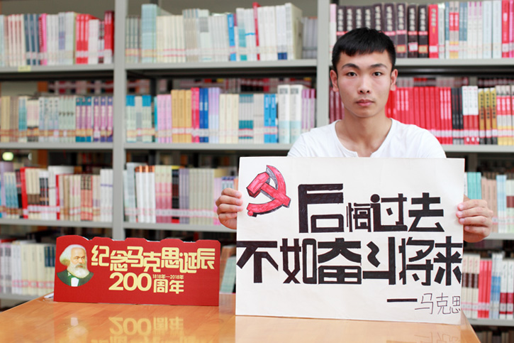 我将马克思的这句名言手绘在了海报上,过去的已成定局,花费时间再去后悔,也于事无补,我们能做的就是好好把握时间,为更好的未来去奋斗。通过奋斗后的未来才不会有遗憾!”电商171班章佳俊说。“马克思主义作为我们党的指导思想,带领我们党和国家发展的越来越好。”物流172班汤玛丽认为:“作为一名当代大学生,要做的是学习马克思主义,联系实际,深刻理解马克思主义,努力奋进,为祖国贡献自己的力量”