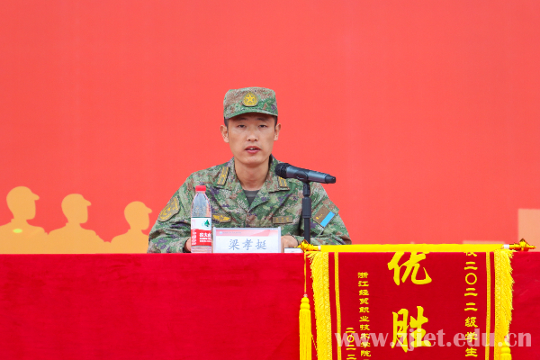 陈德泉在讲话中代表学校向94973部队对本次军训的精心指导表示由衷的感谢,对本次军训付出辛勤汗水的教官致以崇高的敬意,对新生们在军训中取得的优异成绩表示热烈的祝贺。并向全体新生提出三点希望:希望同学们志存高远,锤炼意志,擦亮青春底色;希望同学们自觉自律,强健体魄,打好健康底子;希望同学们善于学习,知行合一,增添技能底气,争做新时代经贸新青年!
