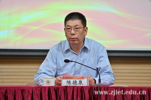 校长陈德泉作“聚焦重点 踔厉奋发 纵深推进学校教育教学高质量发展——2023年教学工作思路”主题报告。他指出,2023年是深入贯彻党的二十大精神的开局之年,也是“十四五”规划实施的关键之年,要牢固树立质量意识、系统思维,以体制创新和教育综合评价改革为驱动力,以专业群建设、数字化改革和国际合作为抓手,以深化产教融合为重点,以科教融汇为新方向,聚焦“十大重点任务举措”,深入推进提质培优和“十四五”规划项目,打好国家“双高计划”建设终期验收“攻坚战”和提质培优行动计划“收官战”,全力推进学校新一轮高水平高质量发展。