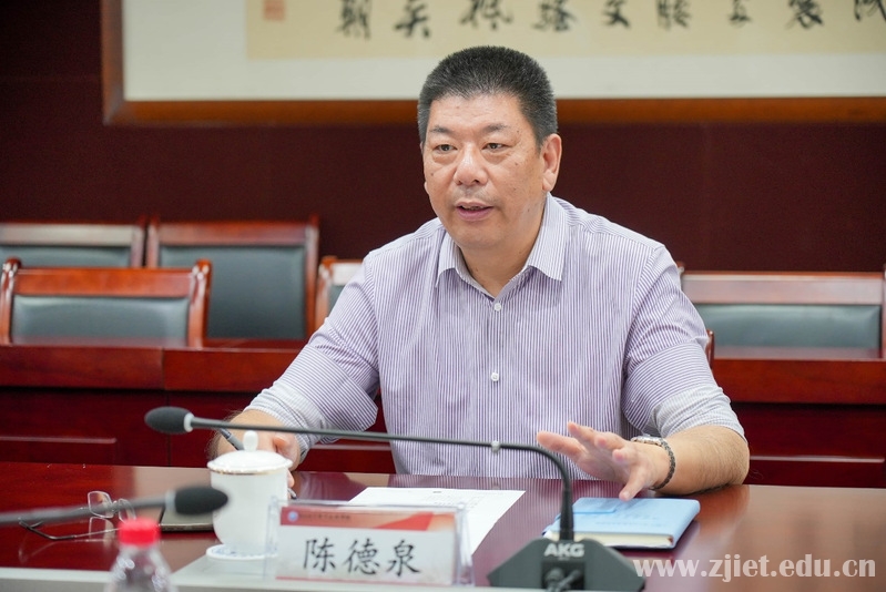 陈德泉对何国一行的到来表示欢迎,对开化县供销社一直以来关心支持学校的发展建设表示感谢。他简要介绍了学校办学情况,重点介绍了学校服务供销行业和“三农”发展所做的工作和取得的成果。他指出,学校与开化县供销社合作基础良好、成效显著,希望通过此次交流,能更进一步加深双方了解,在农产品战略管理、品牌规划、数字化转型升级等领域挖掘合作潜力,共同打造高效一体化全产业链农业服务平台,在服务供销行业发展中做出经贸贡献。